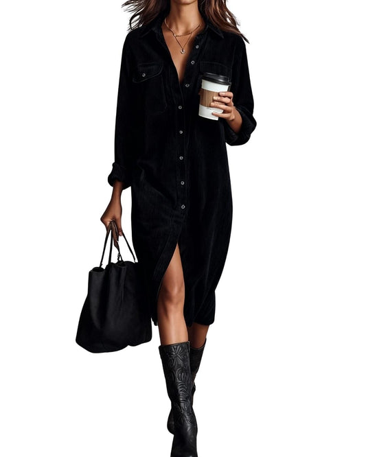 Rochie Maxi Casual cu Guler cu Nasturi